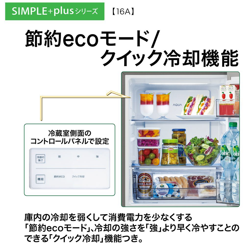 冷蔵庫 SIMPLE+series モスグレー AQR-16A-G [幅48cm /160L /2ドア /右開きタイプ /2025年]