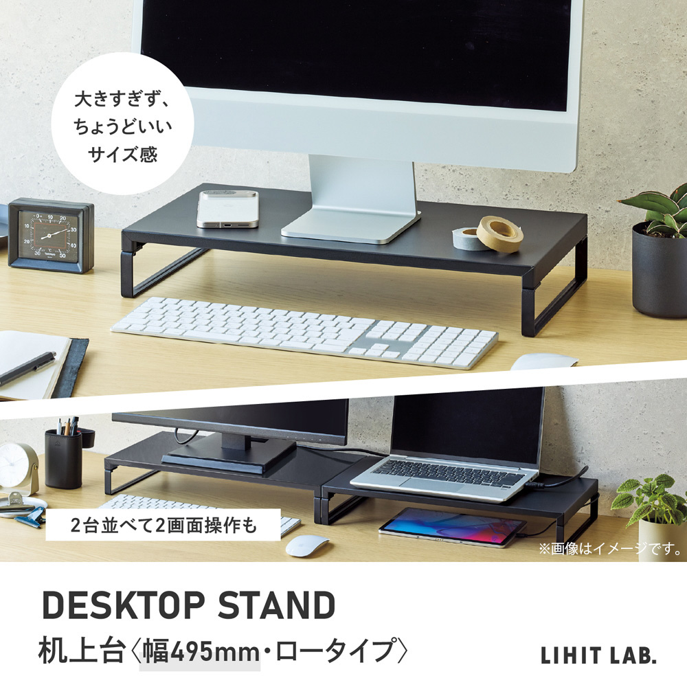 モニタースタンド [W495xD250xH80mm] 机上台 幅495mm・ロータイプ マットブラック A7343-124