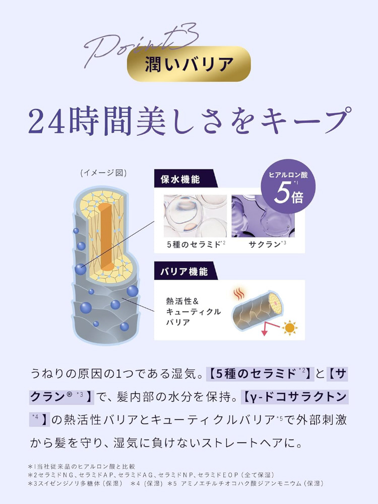ストレート髪*を目指すなら、まずは“洗う”ケアから。髪内部の強度に着目した美容液シャンプー。濃密泡が地肌と髪の汚れをしっかり落としながらもうるおいはキープ。洗うたび、髪の芯まで整え、クセやうねりを補修ケア。サロン発想の処方で、まっすぐなツヤ髪へ。