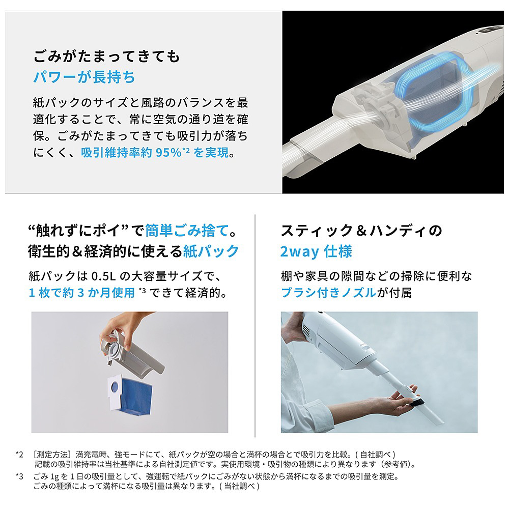 パワフルさ持続、使い勝手抜群。紙パック式クリーナーの決定版。