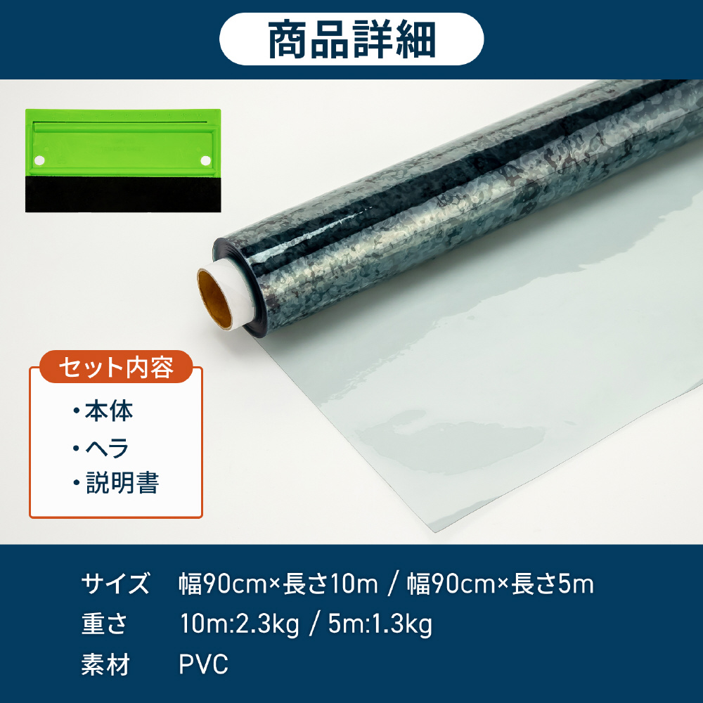 セットには専用のヘラ付き!幅90cmの大判フィルムで、窓全面にも貼りやすい設計です。説明書付きだから初めてでも迷わず貼り付け可能。好きな長さにカットして、お部屋の窓にピッタリフィットさせられます。
