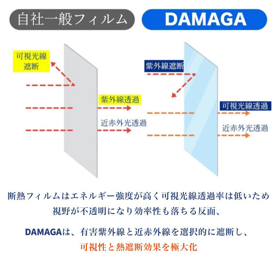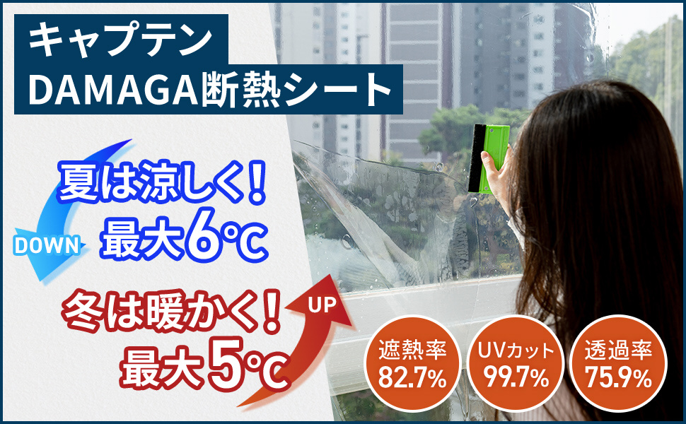 夏の暑さも冬の寒さもこれ一枚!窓用断熱シート『キャプテンDAMAGAシート』夏は熱を遮断して涼しく、冬は冷気をシャットアウトして暖房効率アップ!電気代を節約し、一年中快適にサポート。DAMAGAは簡単DIYで寒さ・暑さ対策のほかにも紫外線・結露・飛散防止を実現する地球にやさしい多機能フィルムです!