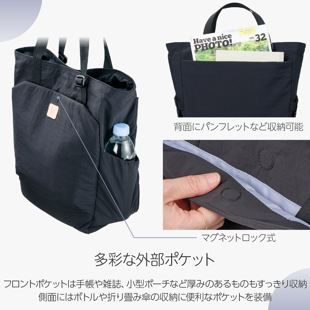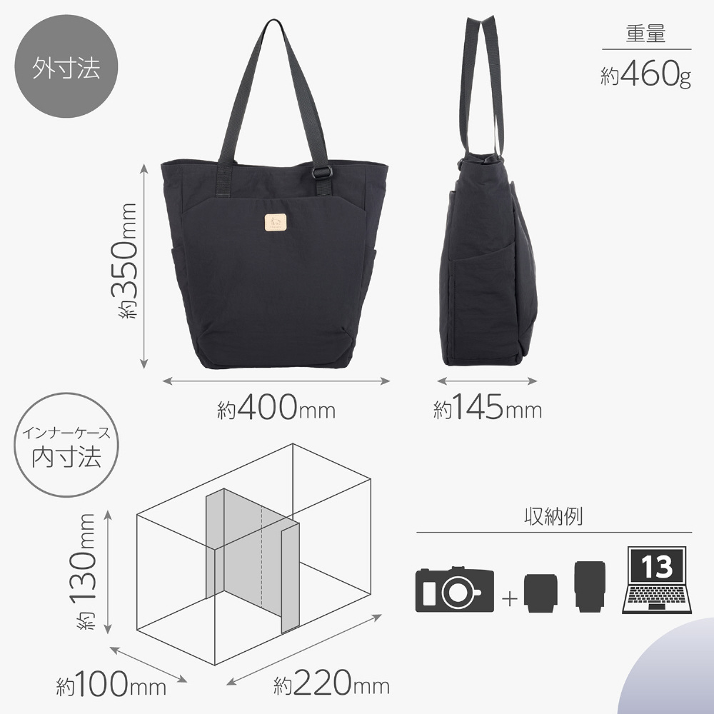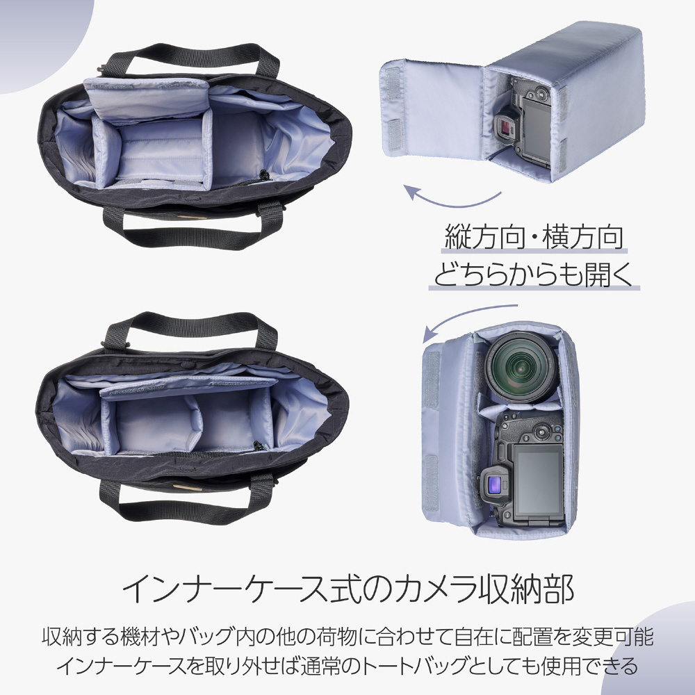 やさしい手触りで普段使いもしやすいインナーケース式の2WAYカメラトートバッグ