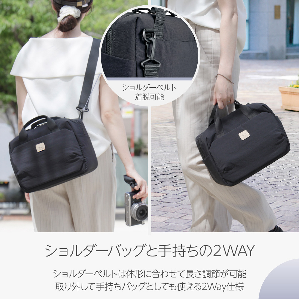 やさしい手触りで普段使いもしやすいコンパクトなカメラバッグ