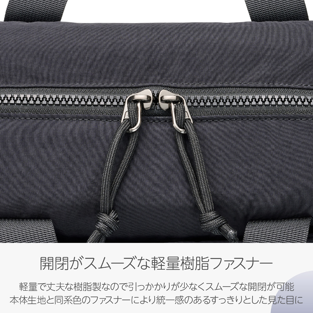 コットンのようなナチュラルな風合いと、ナイロンの優れた機能性を兼ね備えたタスランナイロン生地を採用したカメラバッグです。