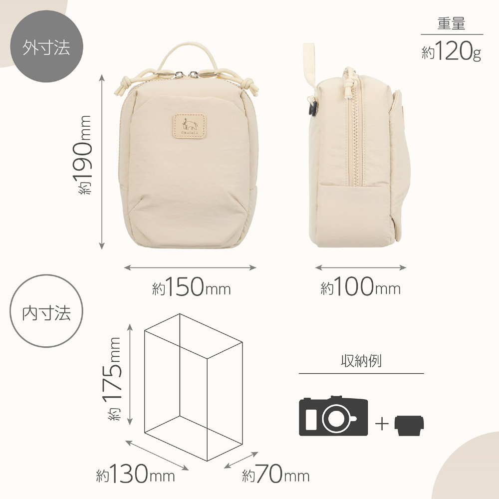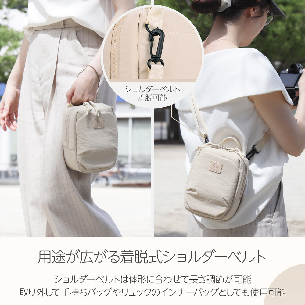 コンパクトカメラとスマートフォンなど、必要最小限のものを収納するのにちょうど良いサイズ感で、毎日のお出かけにぴったりです。