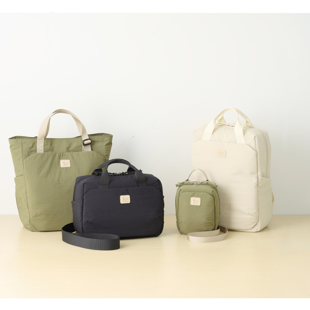 コットンのようなナチュラルな風合いと、ナイロンの優れた機能性を兼ね備えたタスランナイロン生地を採用したコンパクトなカメラショルダーバッグです。