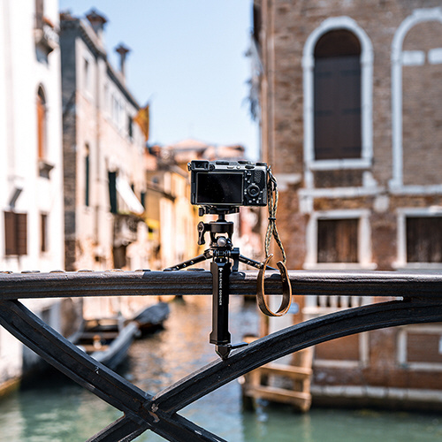 クランプを完全に閉じれば、 超コンパクトなポータブル三脚に。写真も動画も、いつでもどこでも快適な手持ち撮影が可能。