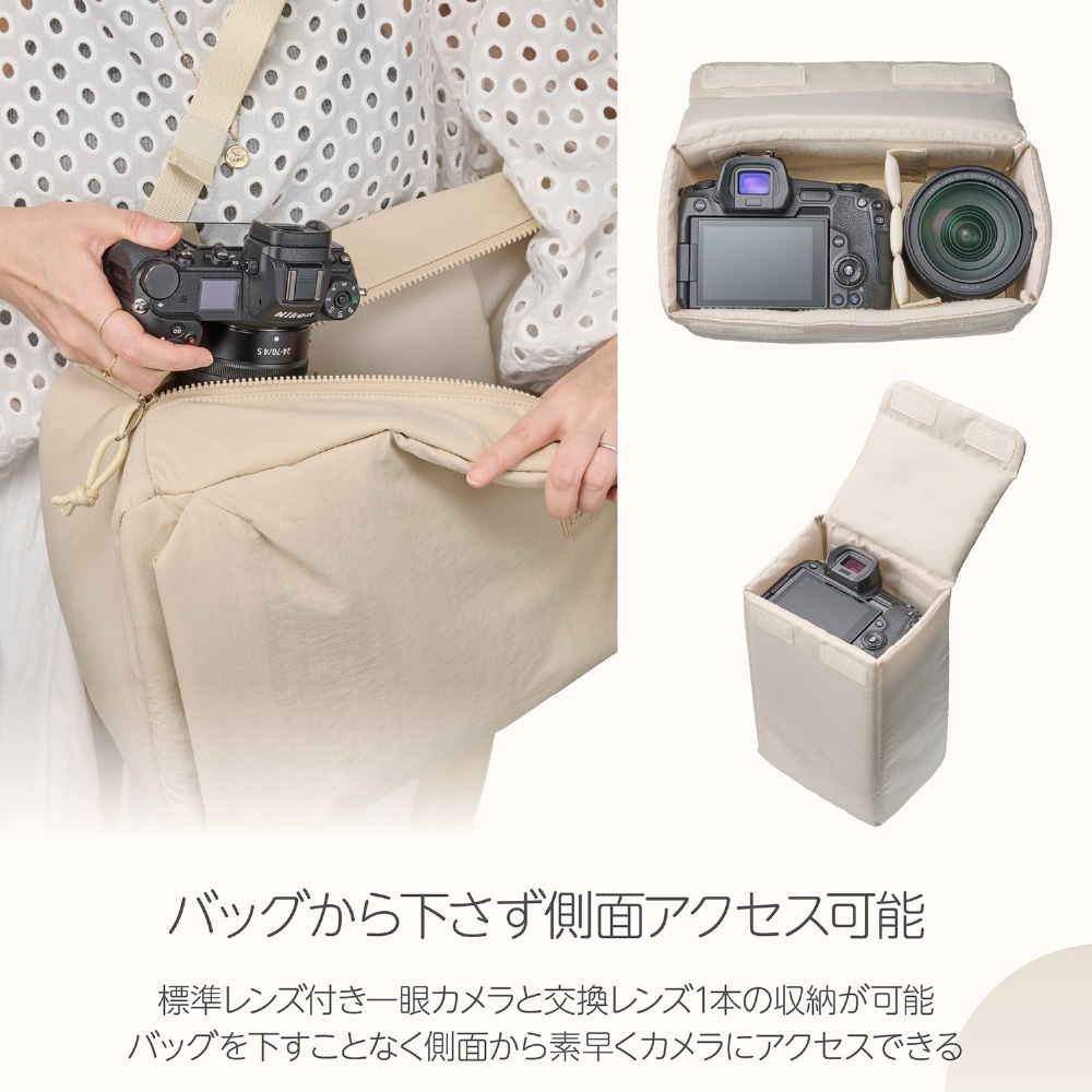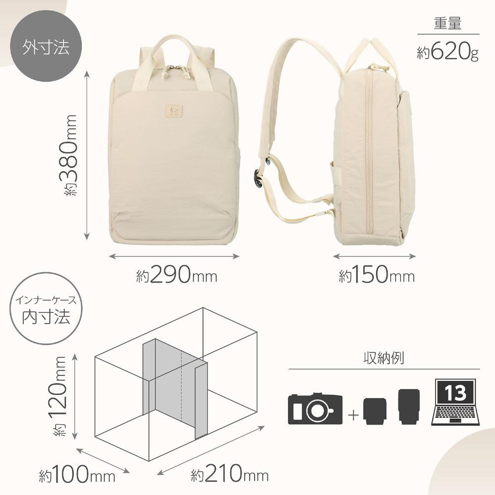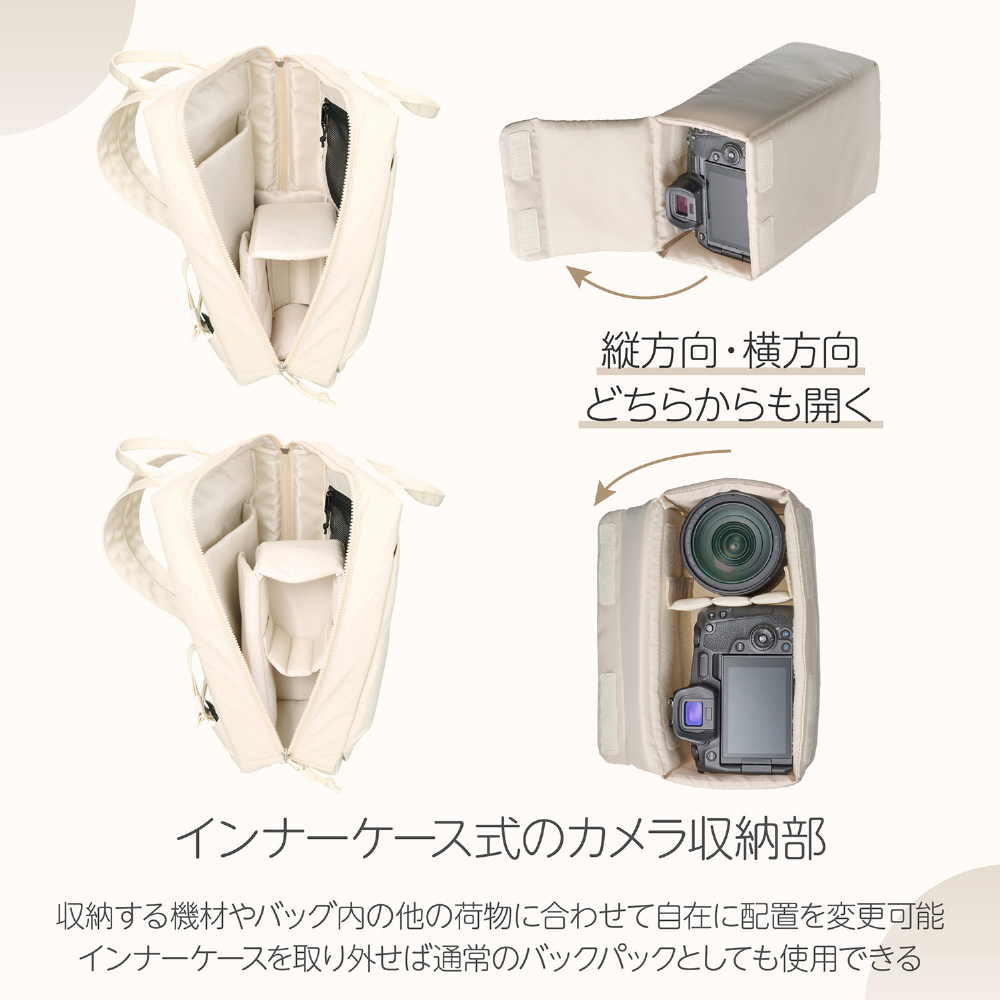 やさしい手触りで普段使いもしやすいインナーケース式のカメラバックパック