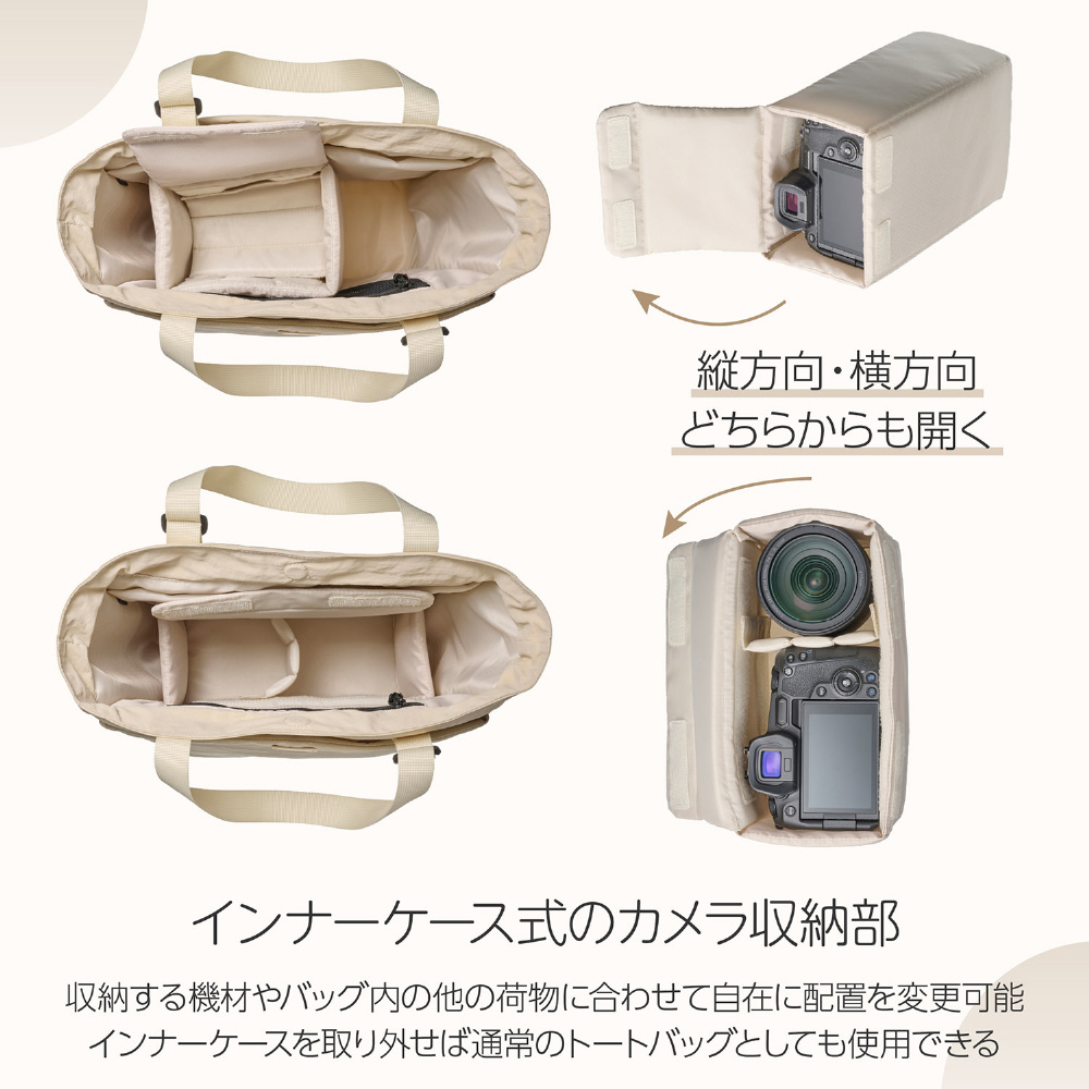 やさしい手触りで普段使いもしやすいインナーケース式の2WAYカメラトートバッグ
