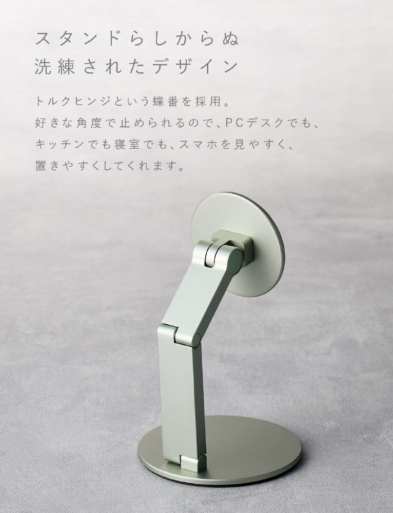 洗練されたデザインで、居場所になじむマグネットスタンド。しっかり吸着する為色んなシーンに便利!