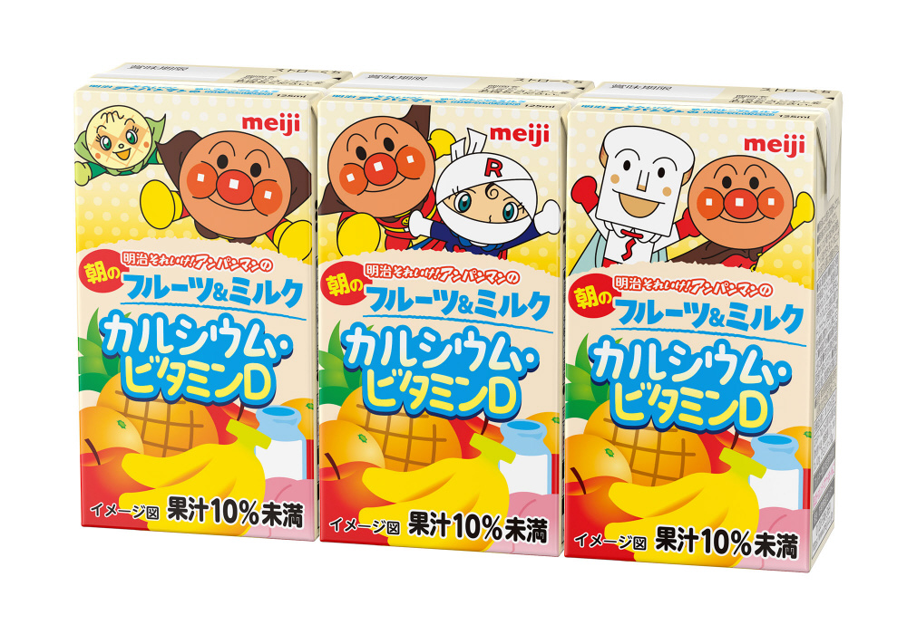 カルシウムとビタミンDを配合し、子どもが大好きなフルーツにミルク感を高めた健康的なあじわいに仕立てた朝の栄養プラス飲料なので、子どもが楽しくおいしく飲めることに加え、すこやかな成長をサポートすることができる「明治それいけ!アンパンマンの朝のフルーツ&ミルク カルシウム・ビタミンD」。