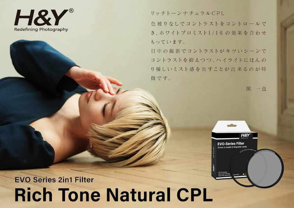 ▲リッチトーンナチュラルCPLは、CPLとソフト効果を1枚で両立することにより、フィルター交換の手間を軽減します。