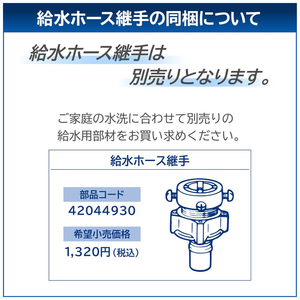 【別売品】 ・給水栓継手は別売りとなります。 ご家庭の水栓に合わせて別売の給水用部材をお買い求めください