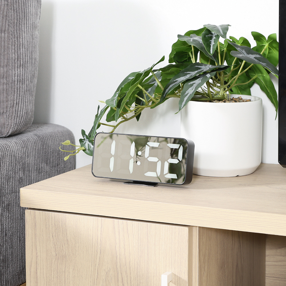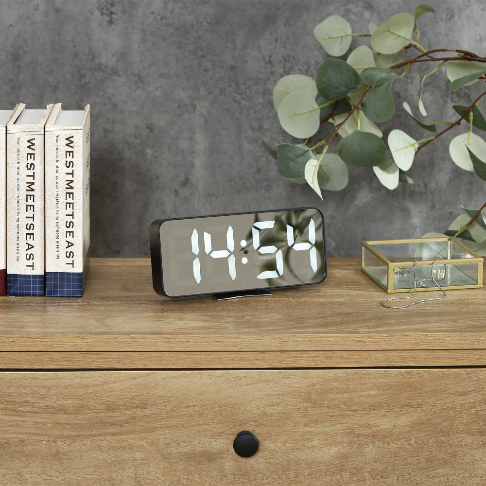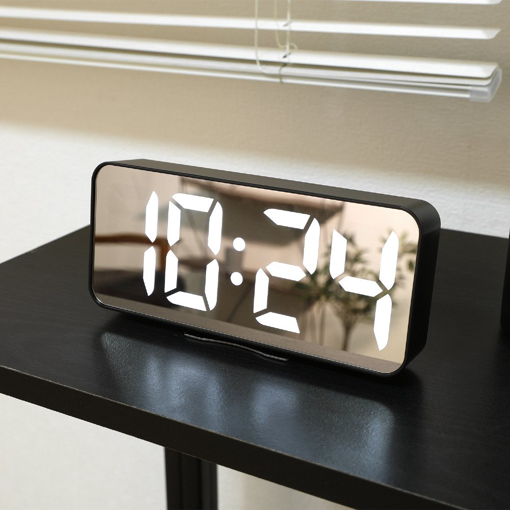 デジタル置時計 ラージミラーサーフェス ブラック 60698