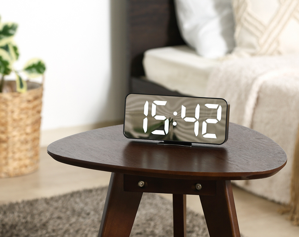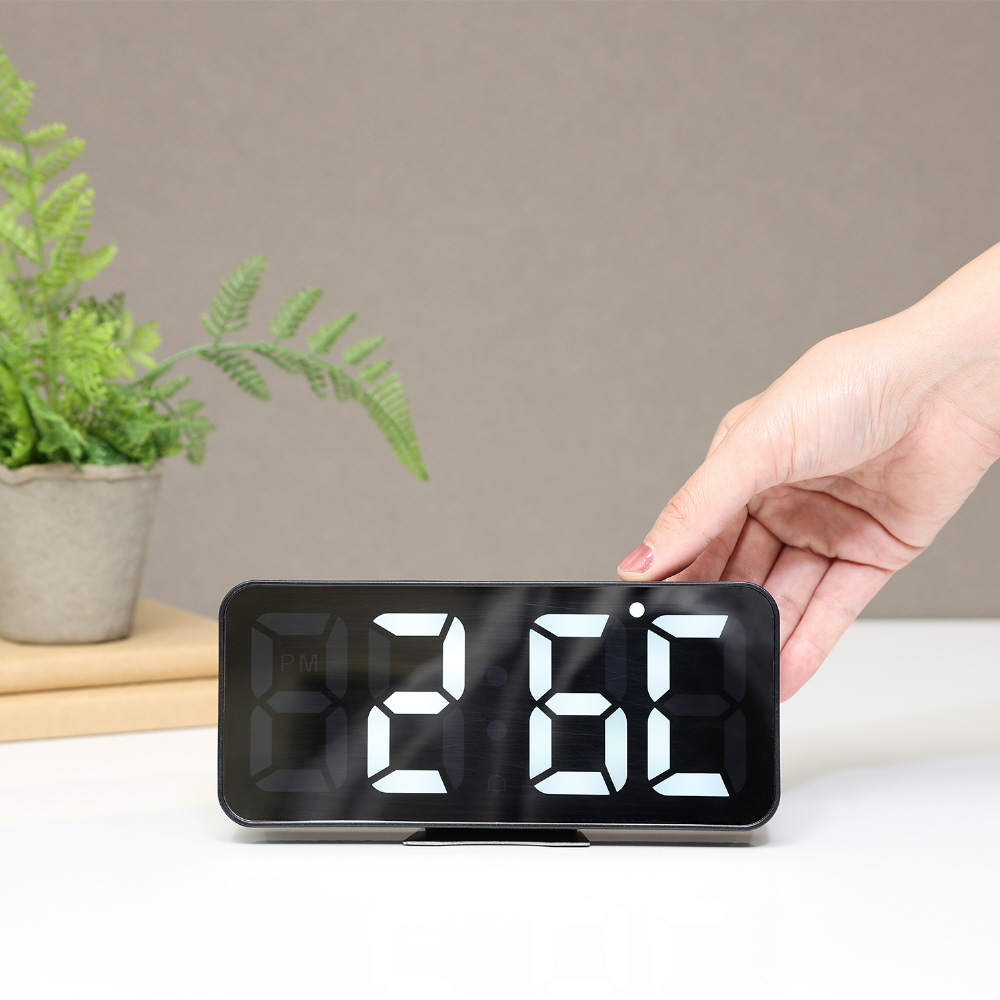 ミラーディスプレイに時間が浮かび上がる、おしゃれなデジタル置き時計