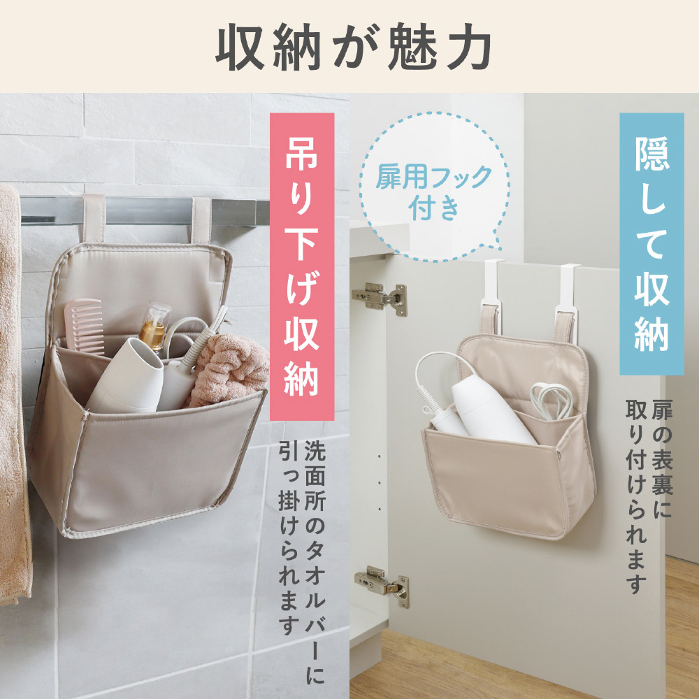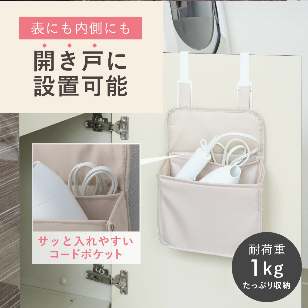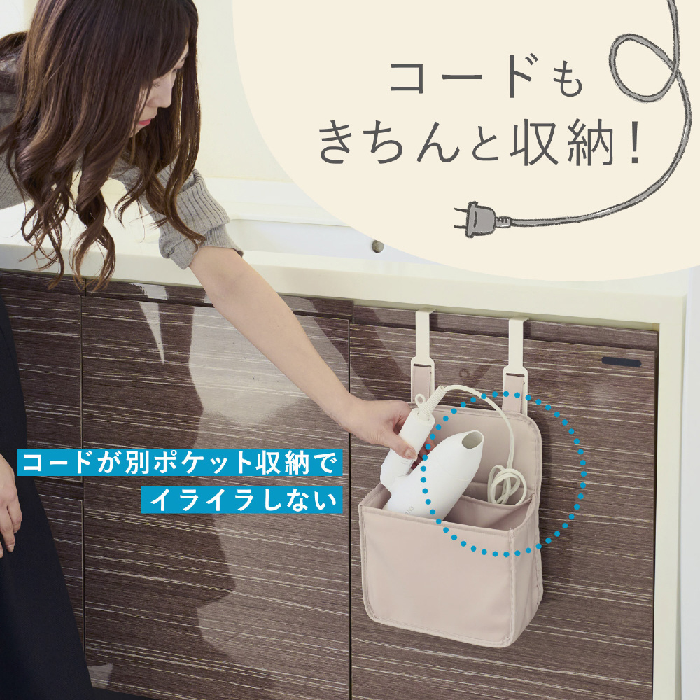 サッと放り込むだけ! 旅行に持ち運べる 洗面台扉に引っ掛け収納 約22×8.5×16cm  コードがまとまるポケット