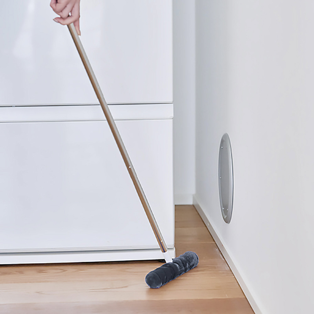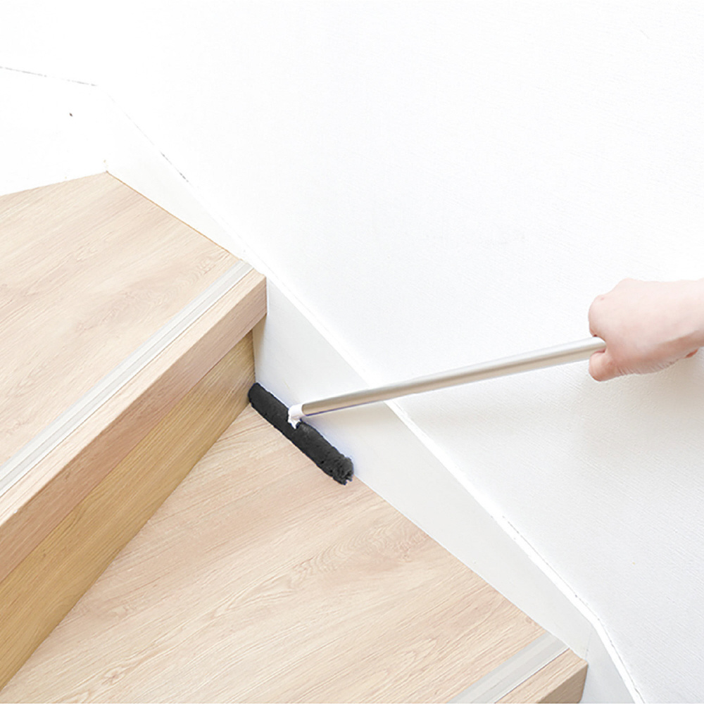 ●スティック形状のモップなのでフローリングや階段、隙間などのホコリ取りに便利です。また、カーブしている階段の角にも届きます。