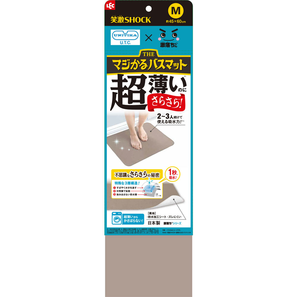 UNITIKA U.T.C.× 激落ちくん 超薄い(※1)のにさらさら(※2)! 2?3人続けて使える吸水力!(※3) 不思議なさらさらの秘密 1秒(※4)吸水! 特殊な3層構造! 1.すばやく水分を通す 2.中間層で拡散 3.染み出さない防水層 超薄いからかさばらない! 【裏地】 ・防水加工シート ・ズレにくい ※1 当社従来品比較 ※2 接触水分移行性試験 ※3 3人連続使用(体重60kg、1人当たりの水分量約10mL〈実使用での平