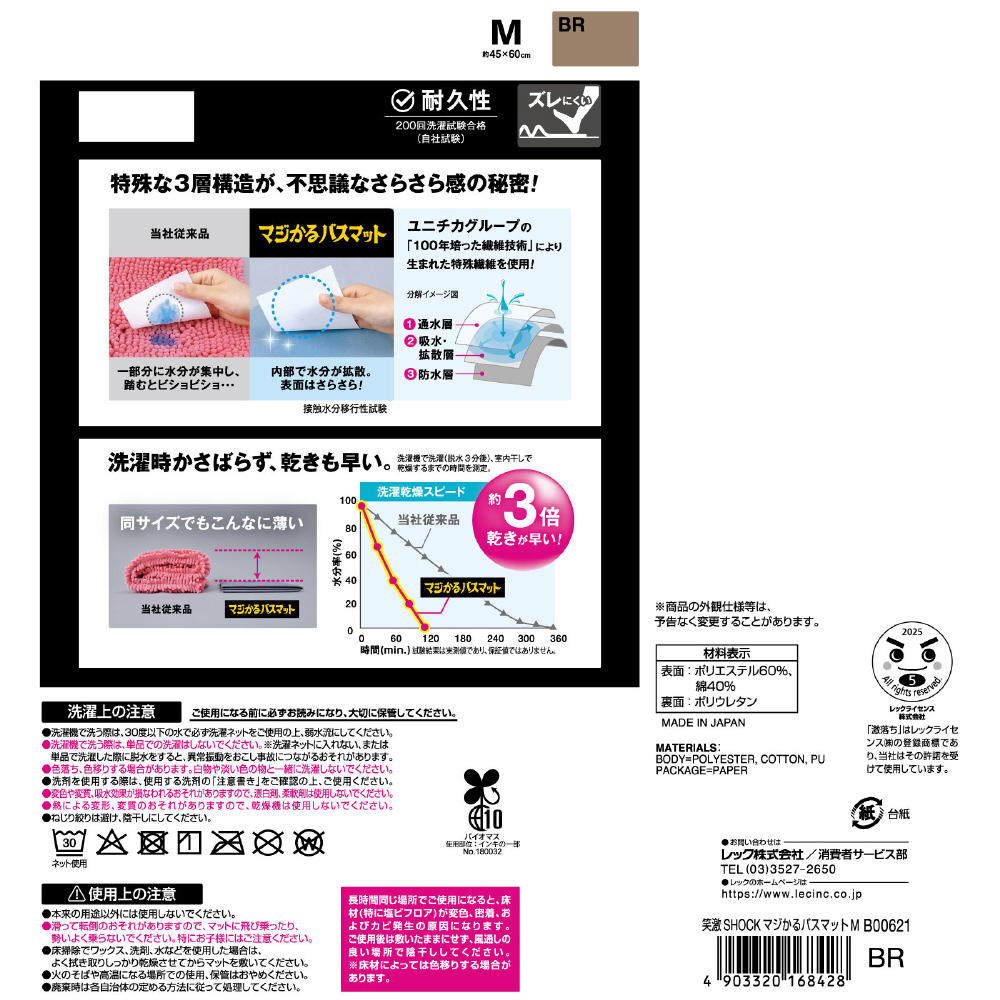 笑激SHOCK マジかるバスマットM ブラウン ブラウン B00621