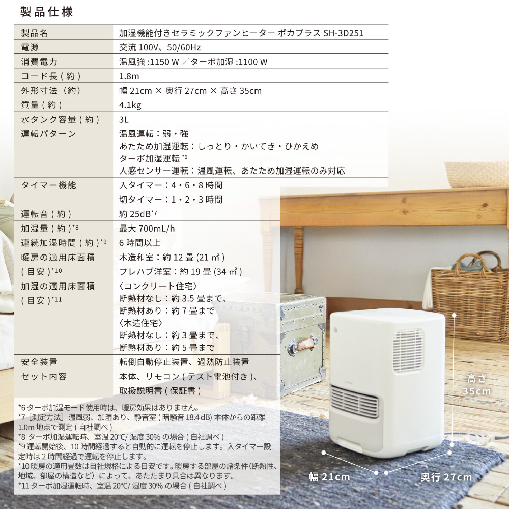 加湿機能付き セラミックファンヒーター ポカプラス SH-3D251