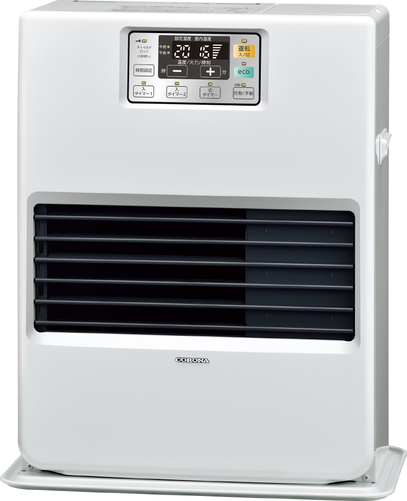 ecoサイン 今の火力が見えるからeco、スタイルに合わせて設定温度を下げて省エネ暖房ができます。10年バックアップタイマー 電源プラグを抜いても、時計機能が10年間持続します。入タイマー2コース お好みに合わせて2種類のタイマー設定の使い分けができます。