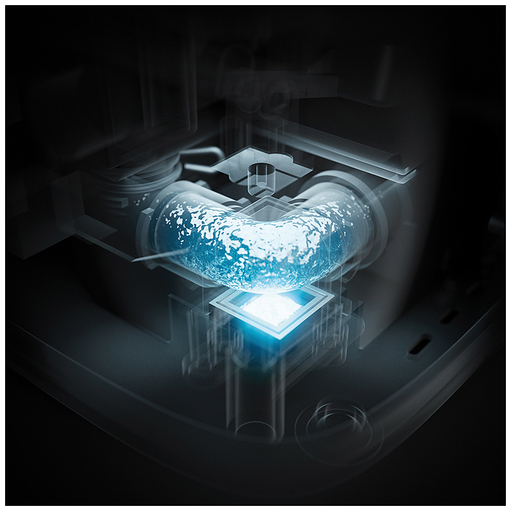 ・衛生的な加湿にこだわりました。UVライト技術により、水はミスト化される前に自動で消毒され、常に衛生的で安心な加湿を実現します。UVライトは本体の内のアクセスできない場所に安全に設置されており、自動的に作動し、メンテナンスは必要ありません。