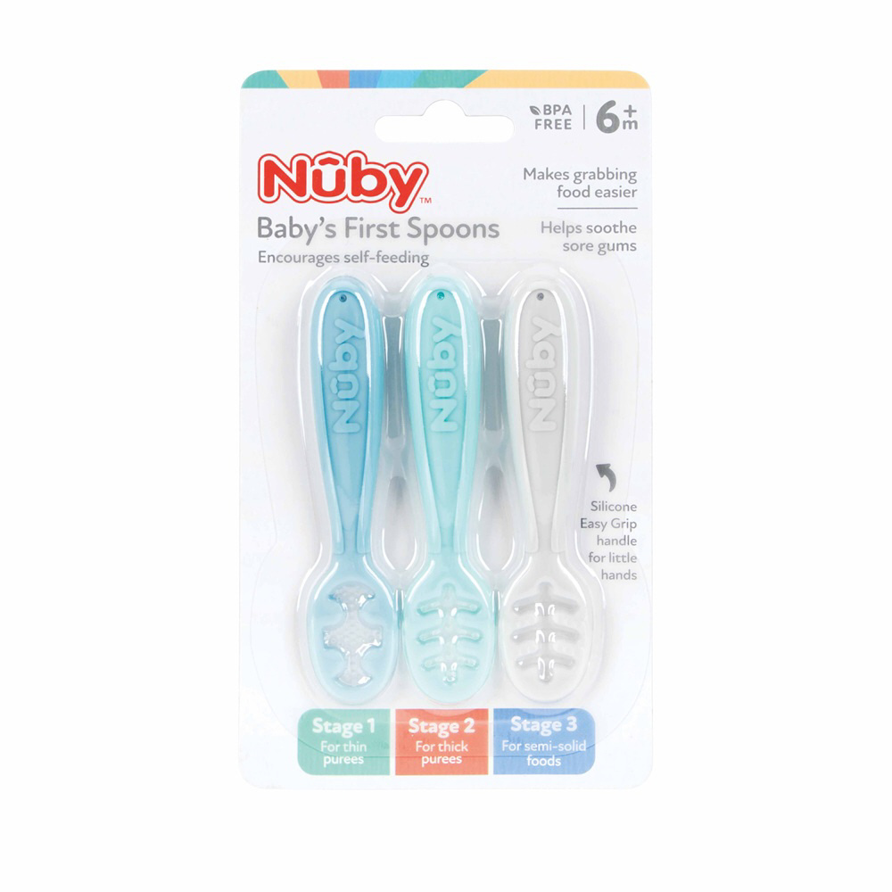 離乳食初期(ゴックン期)、離乳食中期(もぐもぐ期)、離乳食後期(カミカミ期)とステージごとに用途の異なる仕様のスプーンセット