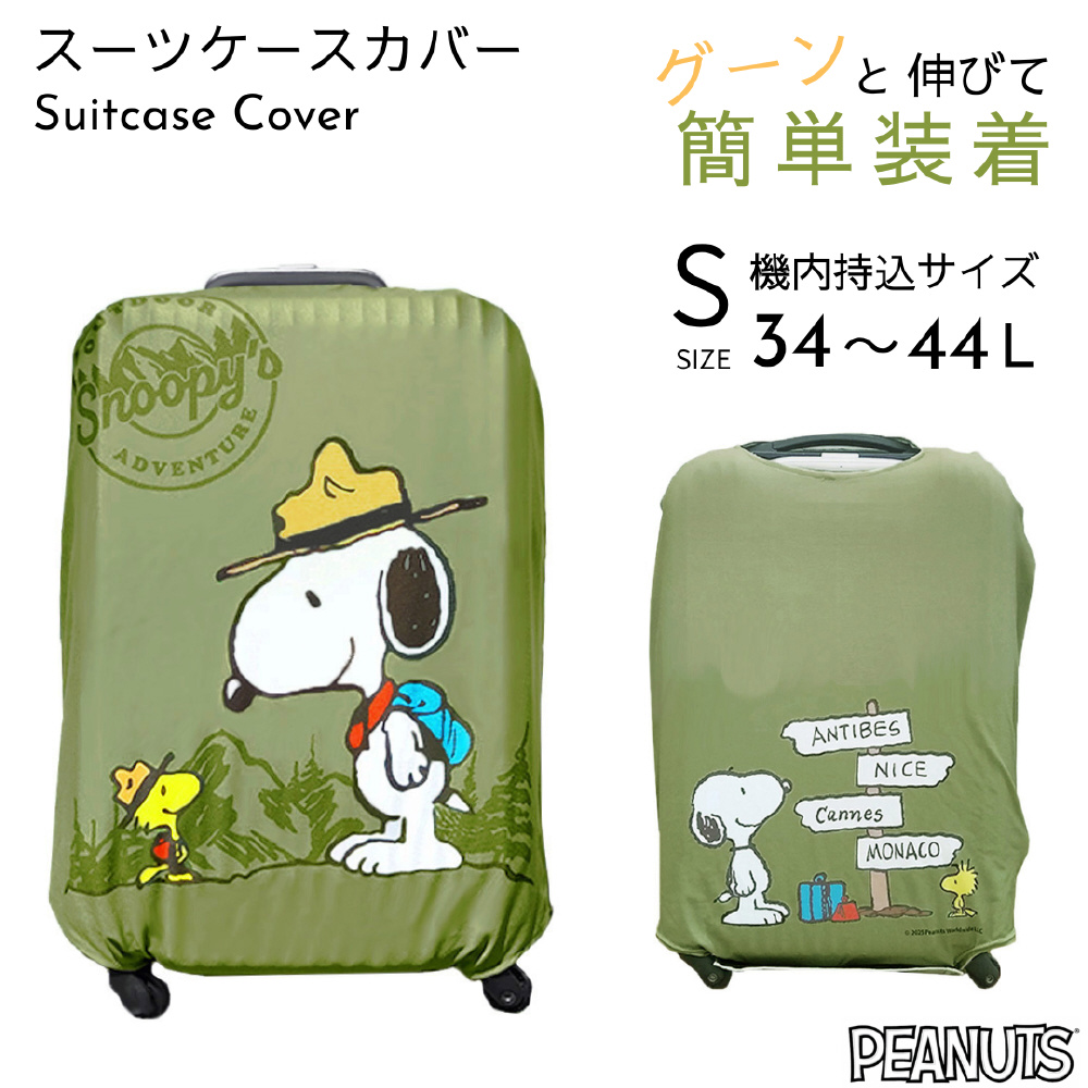 伸縮性 スーツケースカバー Sサイズ スヌーピー カーキ (マウンテン) AD362