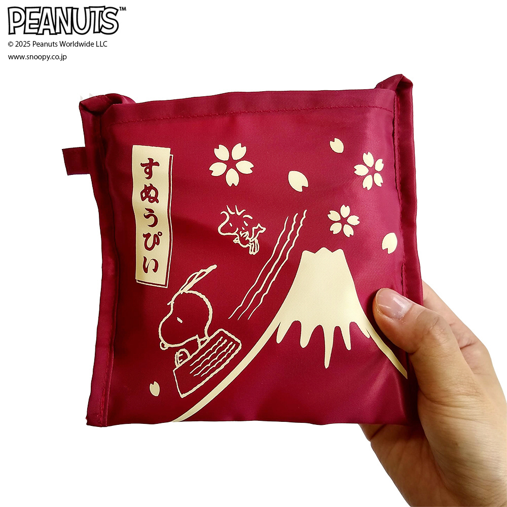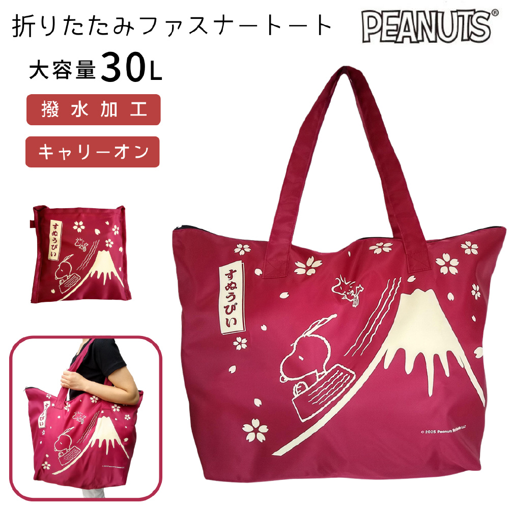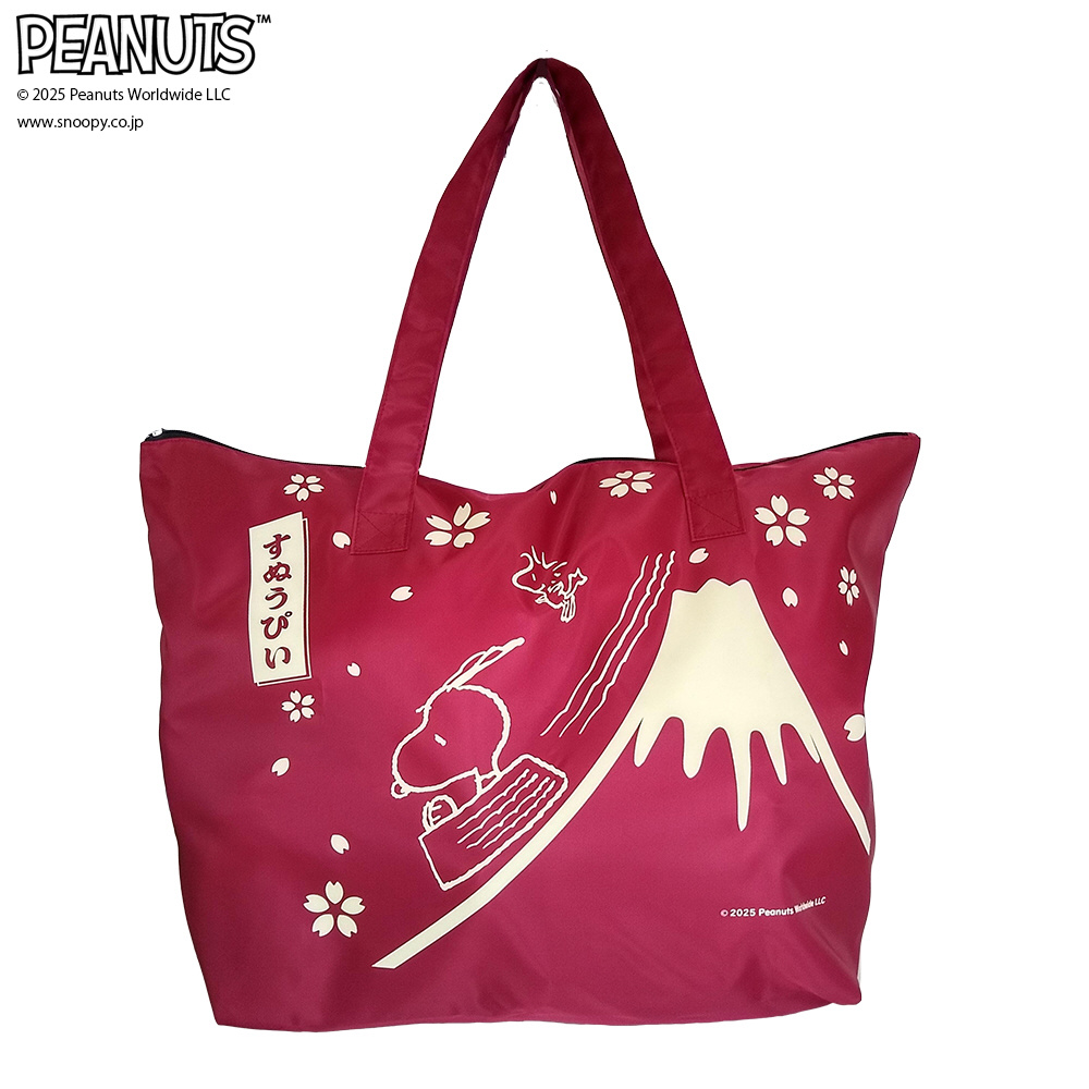 大型折りたたみファスナートート Lサイズ 大容量 スヌーピー レッド (富士山) AD365