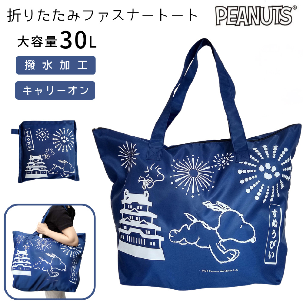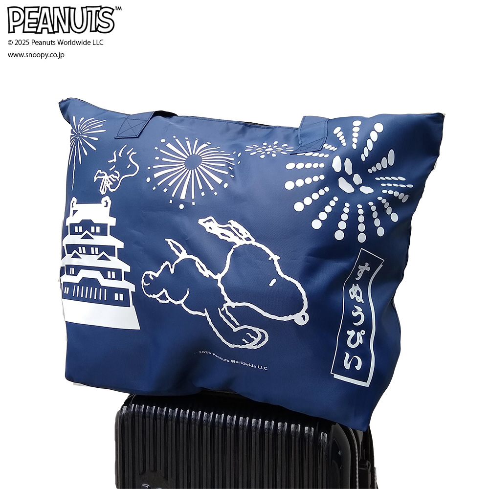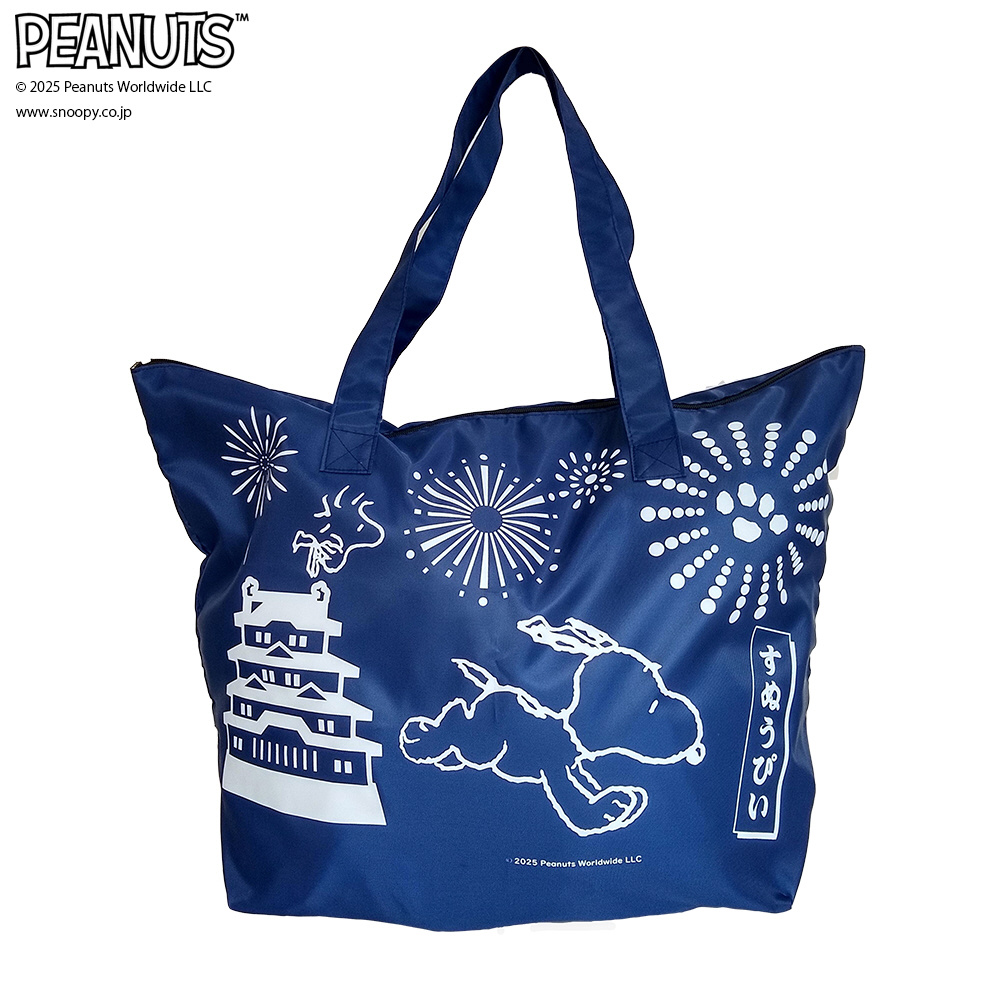 大型折りたたみファスナートート Lサイズ 大容量 スヌーピー ネイビー (お城) AD364