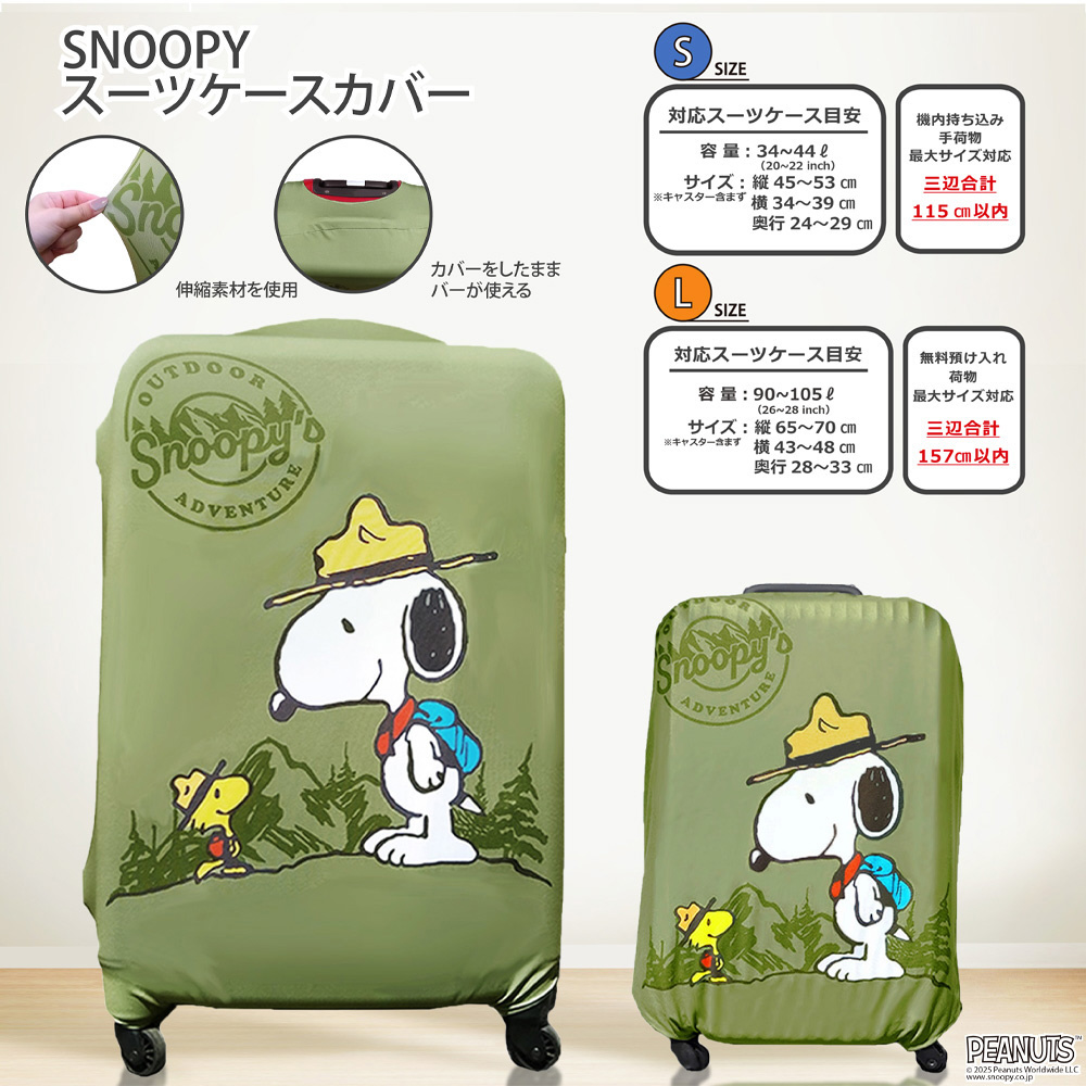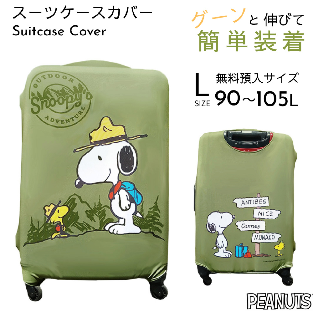 伸縮性 スーツケースカバー Lサイズ スヌーピー カーキ (マウンテン) AD363