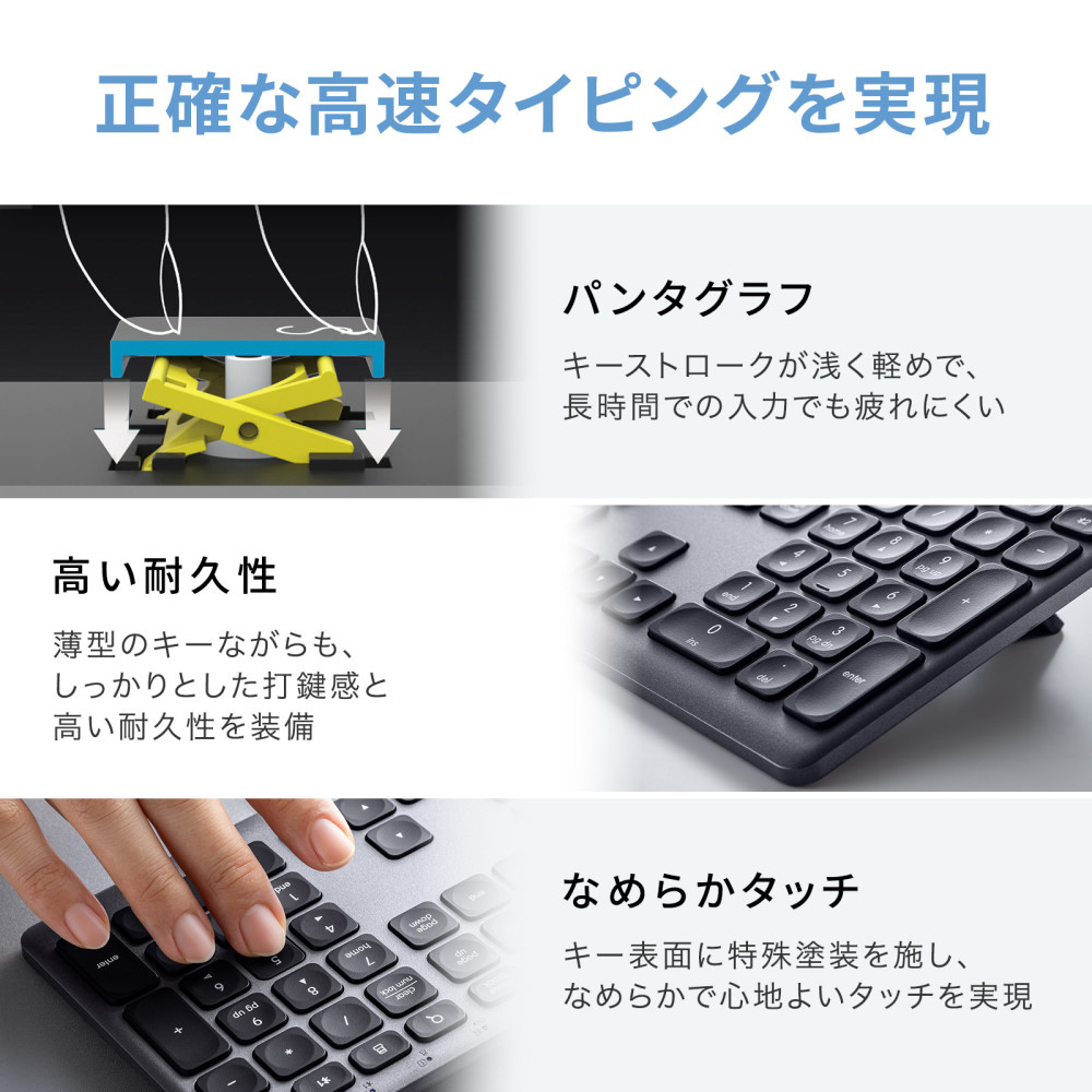 ■ノートパソコンのようなパンタグラフ構造で、静かで軽快なキー入力が可能です。