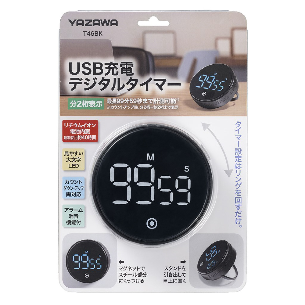 ダイヤルタイマー充電式ブラック 分2桁表示