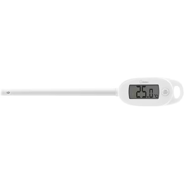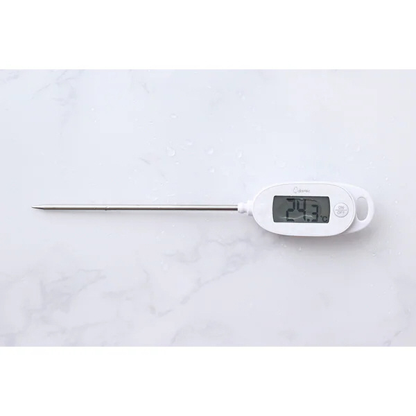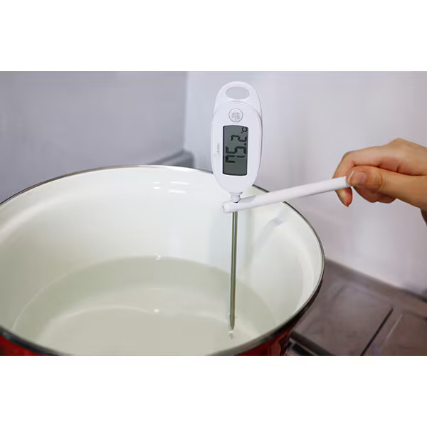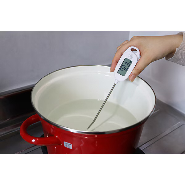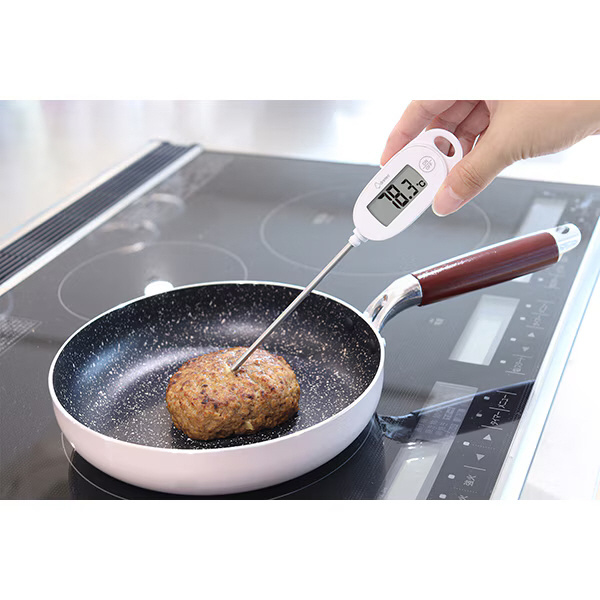 ホルダーの穴にセンサー部を差し込んで持てるので、火元や鍋から立つ湯気より手を遠ざけて使えます。