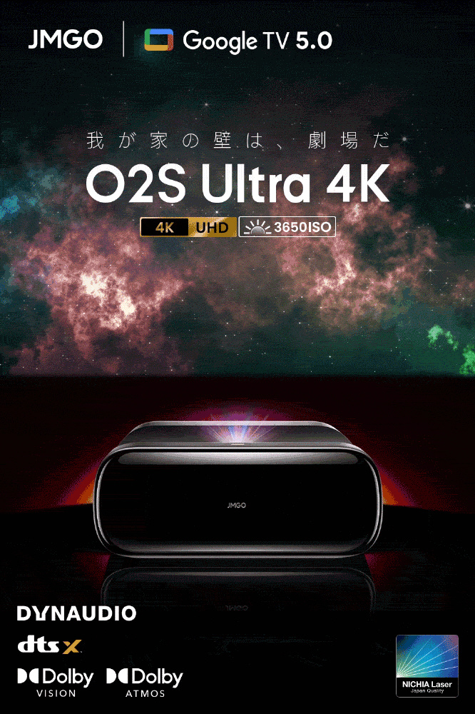Google TV 5.0搭載 3色レーザー超短焦点4Kプロジェクター O2S Ultra 4K