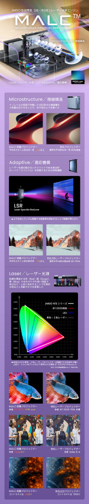 ・自社開発3色(RGB)レーザーエンジンMALC3.0で実現した圧倒的な明るさと鮮やかさ― 3650 ISOルーメン