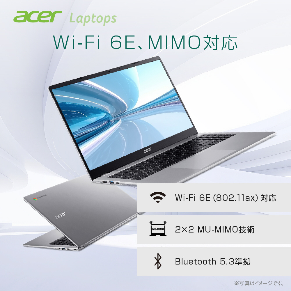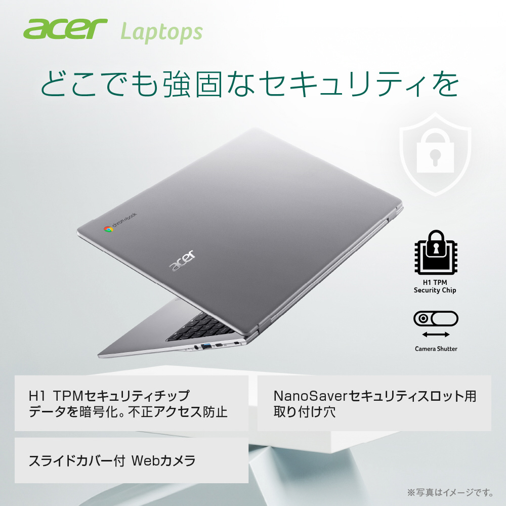 [Acer製ソフトウェア]Google社からの制限によりChromeOSに標準搭載以外のプリインストールアプリはありません。 [電源 / ACアダプター]65W USB Type-C ACアダプター [対応電源電圧、周波数]100V-240V、50/60Hz [バッテリー]53Wh リチウムイオン(本体内蔵) [エネルギー消費効率]10区分 9.2kWh/年 (AAA)
