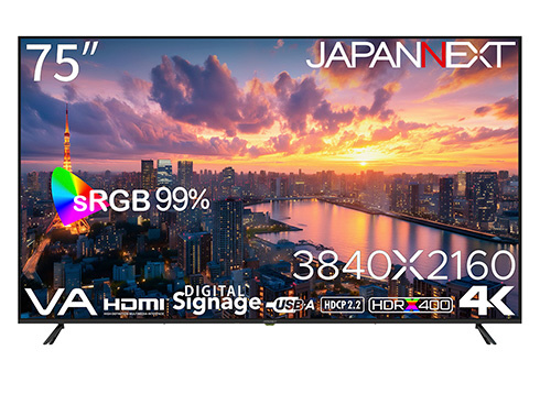 75インチのVAパネルを搭載し、4K(3840x2160)解像度に対応した大型液晶モニターとなります。
