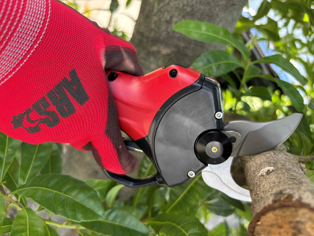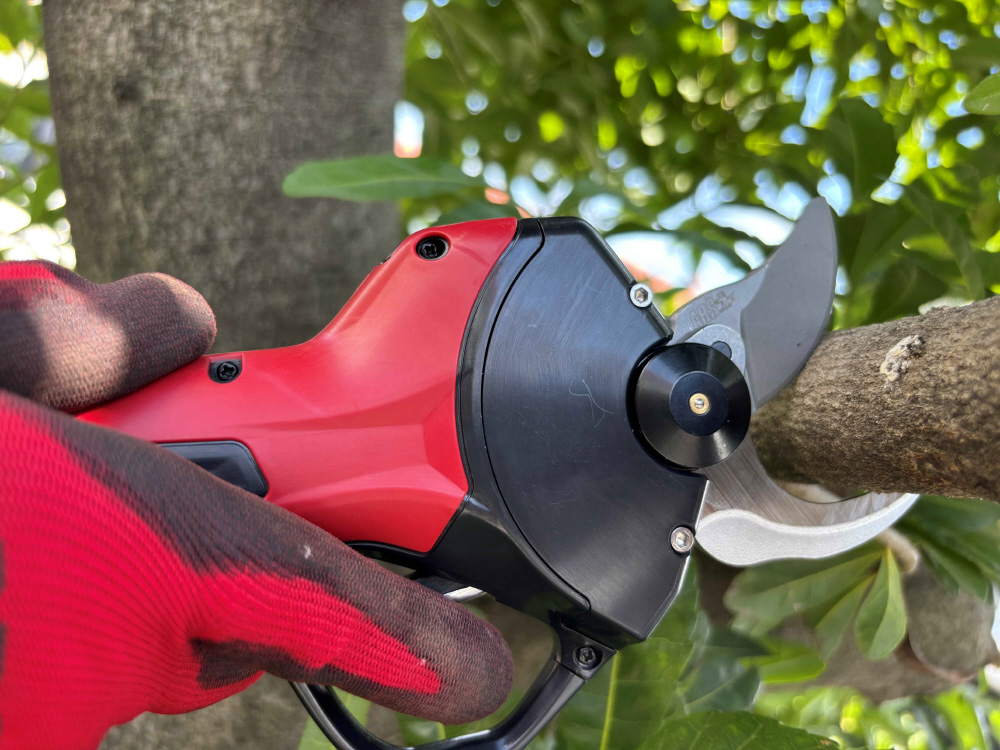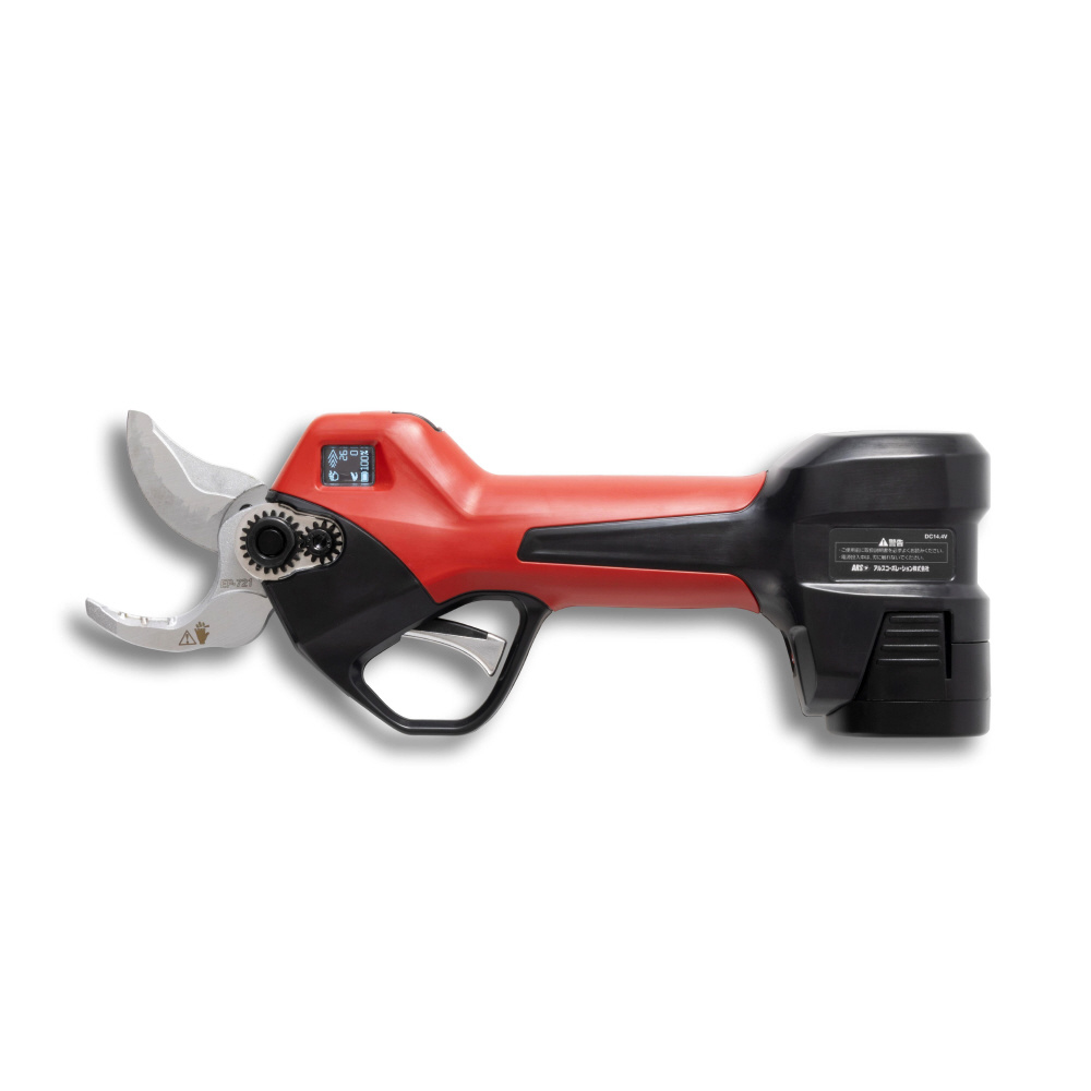 ●スパ切れ長持ちコート。●安心・便利の機能。●最大クラスの切断力を最軽量で。●ワニ刃と滑り止め形状による優れた刃設計に加え、太枝に対応する高トルクモーターを搭載。●これにより、最大40mmの切断力を実現しました。●太く硬い枝には確かなパワーを。●細く繊細な枝には、無段階調節機能によるしなやかな操作性を。●一台で、あらゆる剪定に応える。●それが、プロフェッショナルのニーズに応えるこのモデルです。●革新のスパ切れ長持ちコート。●アルスの特許刃と表面処理技術により、さまざまな枝を安定して切断。●スパッと決まる一刀が作業効率を高めます。●ユーザーが安全に便利に操作するための機能を標準装備しております。●もっと軽快に、もっとパワフルに。●進化した切れ味で作業を変える。●「スパ切れ長持ちコート」を施した刃がパワフルな切断を可能にしました。●創業150年のメーカーならではの切断力を体感ください。●ハードクロームメッキを施した刃にフッ素コートを施す事で耐久性を保ちながら切れ味の良さを実現。●刃の表面にのみフッ素コートを施す事で切断時の皮残りを防ぎます。●電動剪定鋏の強いパワーで切断しても刃欠けが起きにくいよう、手で使う剪定鋏よりも1段多い3段加工の刃を採用。●プロのハードな使用に耐えます。●作業に合わせて刃の開き幅を思いのままに調整できる無段階モードを搭載。●太い枝も細い枝も、ひとつの動きでスムーズに切断できます。●細い枝をたくさん剪定するときは、刃の開き幅が狭い「細枝モード」に切り替え可能。●刃の開き幅が狭いと開閉速度が上がり、素早く切断できます。●指の動きに刃が連動する「トリガー追従式」。●使用上の安全性を向上させる「ケガ防止機能付き」。高所での使用時に便利な「落下防止ストラップ付き」。●木を傷つけず、健やかに育てる切れ味。●創業150年超の刃物づくりの知見と特許を取得した刃形状・独自の表面処理技術により、木の癒合が早く、病気のリスクも減少。●より良く、より健やかに育てるための手助け。●木の繊維を潰さず、清潔で滑らか。●0.3秒でφ40mmの太枝切断 ※1サイクル0.6秒。●専用ホルスター付き。●丈夫な樹脂製キャリングケース。●替刃式。●切断目安:生木直径40mm(※切断径は樹木により変動します)。●刃長:52mm。●セット内容:本体・バッテリー×2・充電器・替刃用2.5六角レンチ・替刃用4六角レンチ・替刃用14特殊レンチ・専用油差し・キャリングケース・取扱説明書・ユーザー登録案内書。●電圧:DC14.4V。●バッテリー容量(リチウムイオン電池):2.5Ah。●標準充電時間:1~2時間(1バッテリーあたり)。●連続使用時間:3~4時間(作業条件により変動)。●推奨使用環境:5度~45度、限界値:マイナス10度(※限界値は確実な動作を保証するものではありません)。●充電環境:5度~45度(※特に、寒い環境での充電は避けてください)。