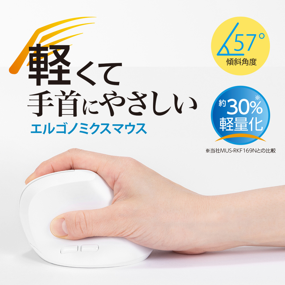 ■重量わずか約73gの軽さを実現、約57度傾斜したエルゴノミクスデザイン