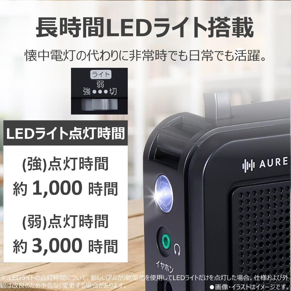 音声が聴き取りやすいホームラジオ、電池長持ち450時間。