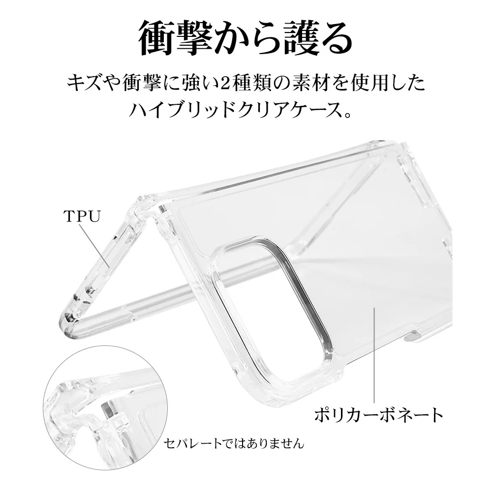 本製品はTPU素材とポリカーボネート素材を使用したハイブリッドケースです。