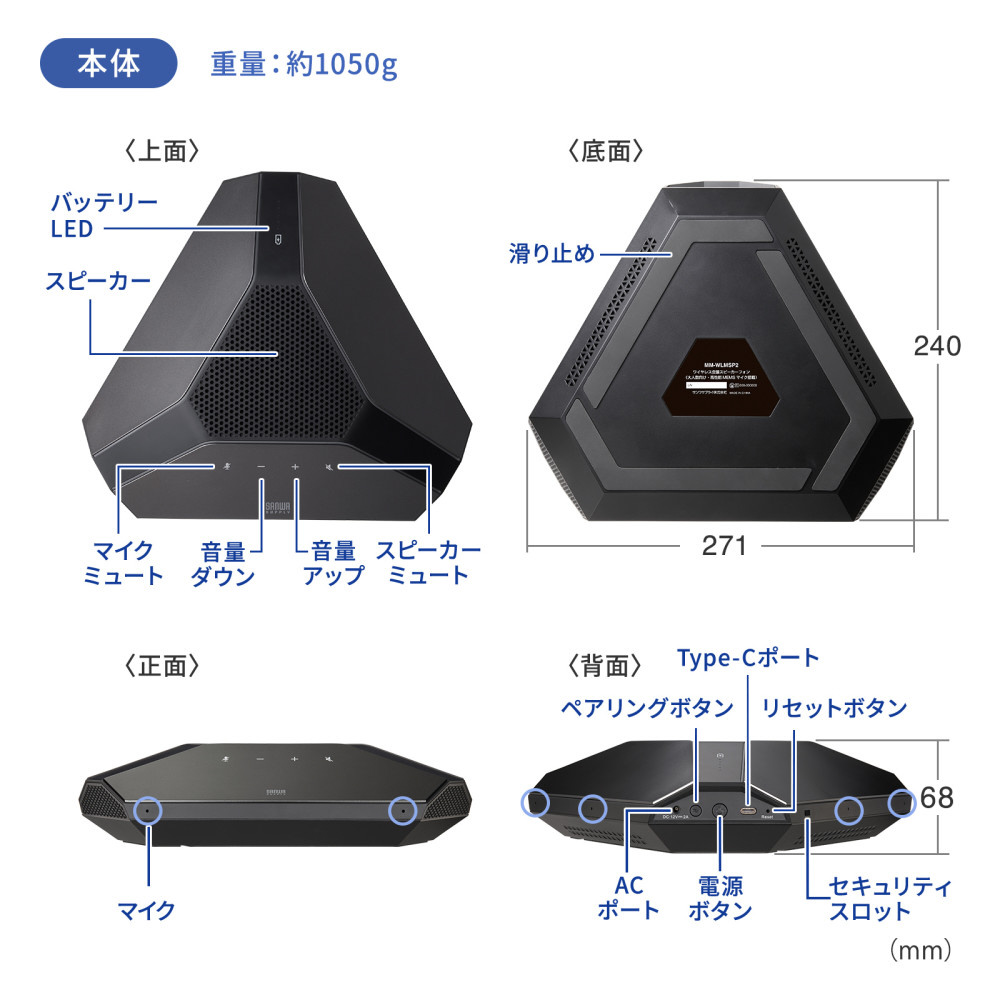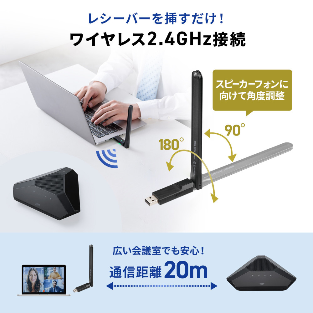 高性能MEMSマイクを6個搭載した大人数向けのワイヤレス会議スピーカーフォン。最大3台まで増設可能。