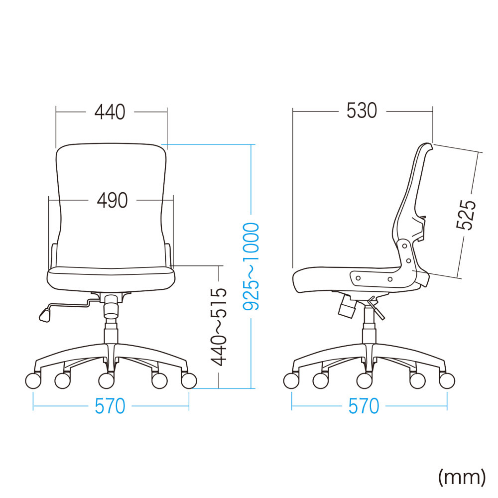 座面(座面調節)/約W490×D530mm(約H440〜515mm)