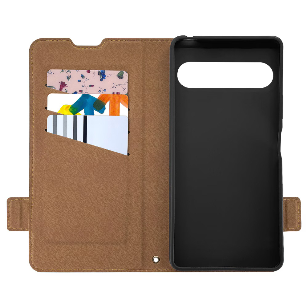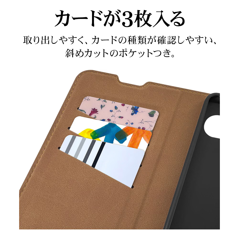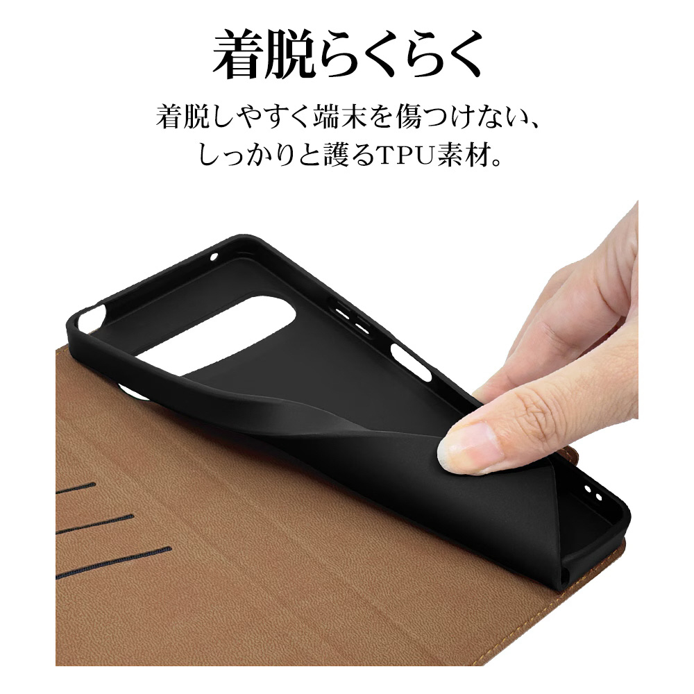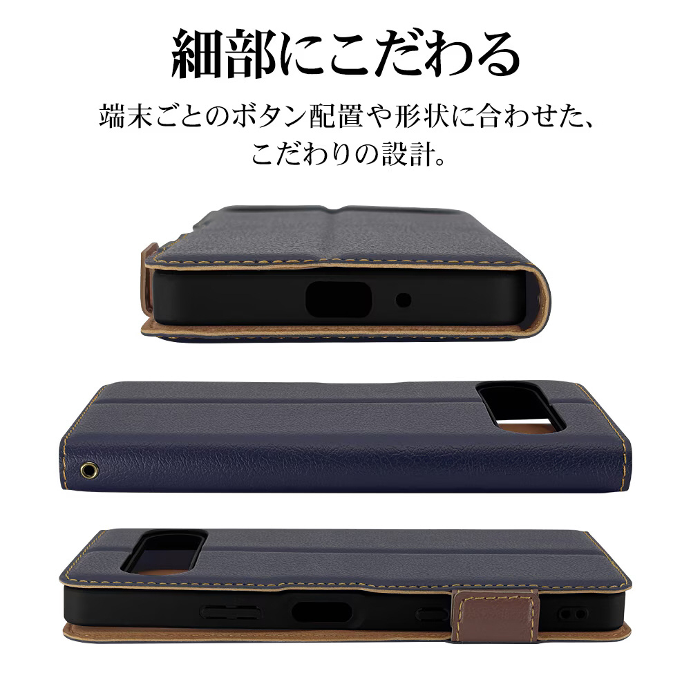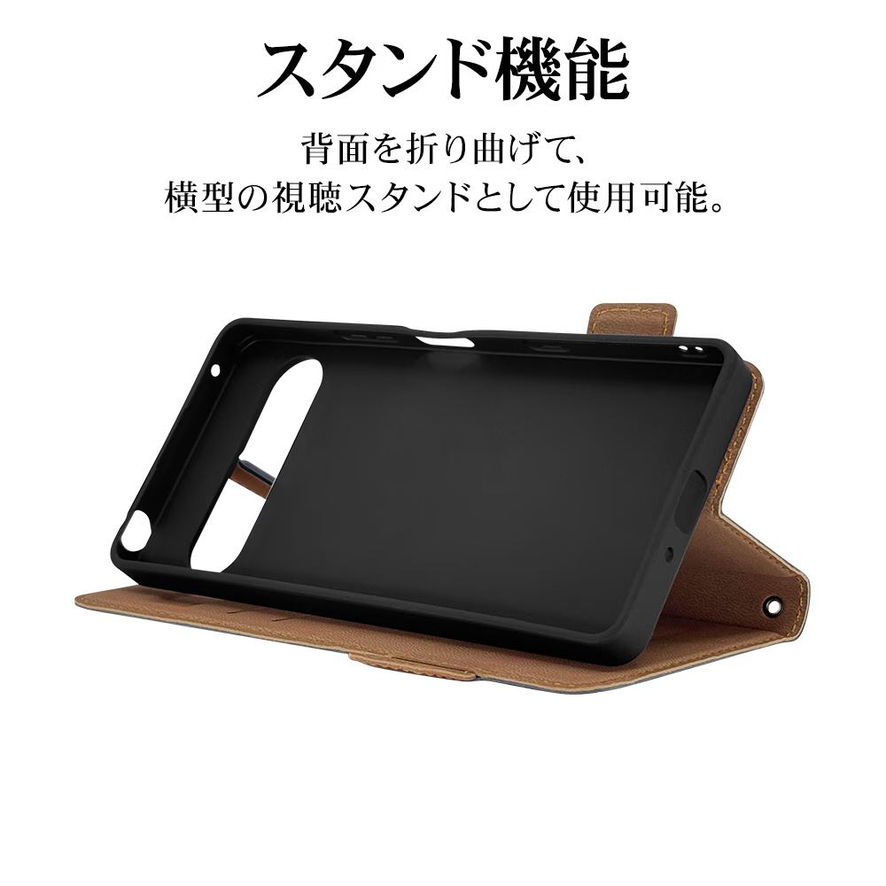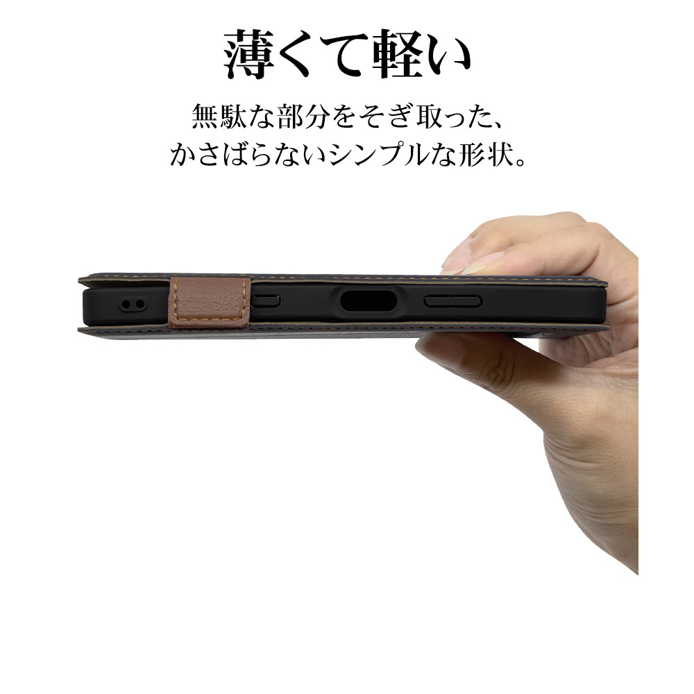 液晶画面側と背面側の両面を保護できる薄型で持ちやすい手帳型ケースです。