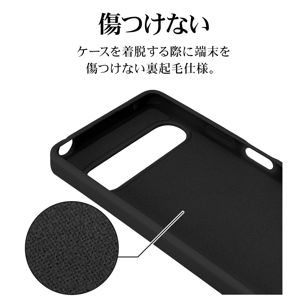 ●内側はマイクロファイバーで優しく端末を護ります。※衝撃吸収については、一般的なポリカーボネート製ケースと比較した自社検証結果で、無破損、無故障を保証するものではありません。
