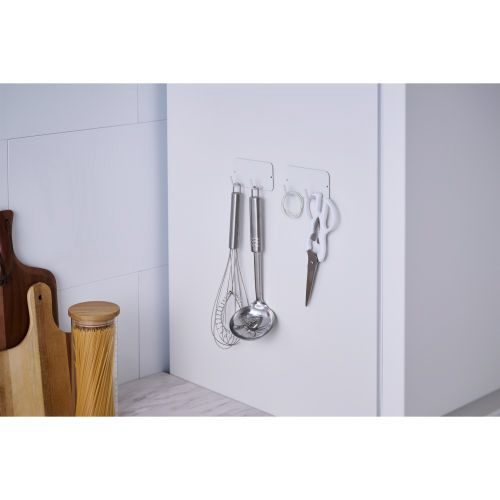 忙しい毎日の暮らしのそばに寄り添い、ゆとりを生む“side(サイド)”シリーズのキッチンアクセサリーです。 よく使うキッチン小物をまとめて収納できる、フックです。 フックの奥行が広いため、トングなどの幅の広い柄も掛けられます。 壁面や冷蔵庫の側面などにマグネットで簡単に取り付け可能。デッドスペースを有効活用することで、キッチンの作業スペースが広がります。 お好みで横並びや縦並びに取り付けられます。 キッチン以外でも、玄関の扉などに貼り付けて鍵やエコバッグの収納としても使えます。 シンプルなホワイトカラーとマットな質感で、幅広いインテリアに馴染みます。 当社シリーズ製品と組み合わせて使うと、統一感がでてキッチンツールをおしゃれに収納できます。 ※浴室などの水に濡れる場所では使用しないでください。 ※火災の原因となるため、コンロの近くで使用する際は可燃性のものを絶対に収納しないでください。 ※冷蔵庫の側面は構造上、高温になる場合がありますので、熱に弱いものの収納は避けてください。 自社環境認定基準を1つ以上満たし、『THINK ECOLOGY』マークを表示した製品です。 環境保全に取り組み、製品の包装容器におけるプラスチック重量を、社内基準製品より20%以上削減した製品です。
