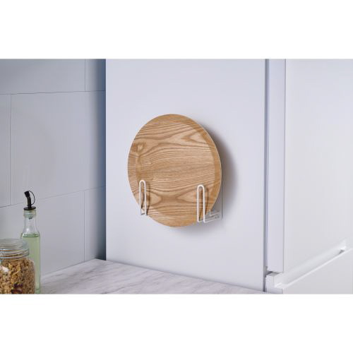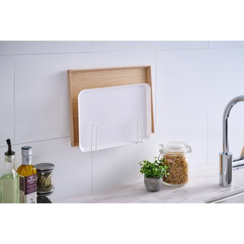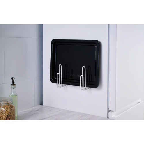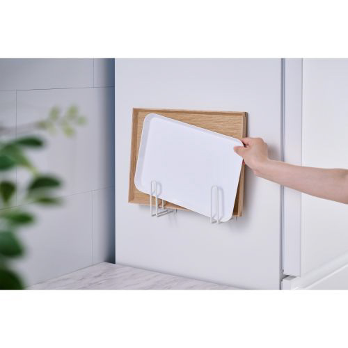 置き場所に困るトレーをまとめて収納できる、“side(サイド)”シリーズのトレーホルダーです。壁面や冷蔵庫の側面などにマグネットで簡単に取り付け可能。円形のトレーはもちろん、オーブンやトースターの天板など、さまざまな形状に対応します。