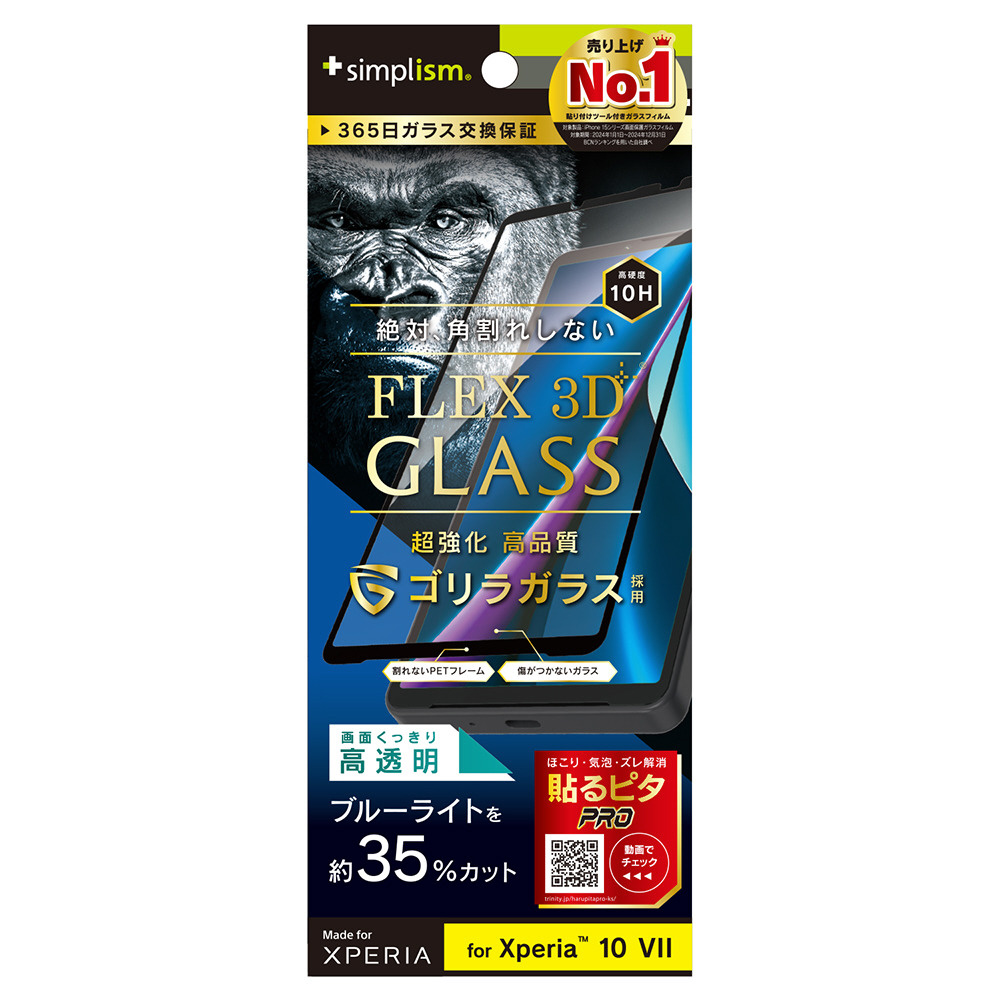Xperia 10 VII [FLEX 3D] ゴリラガラス 黄色くないブルーライト低減 複合フレームガラス ブラック